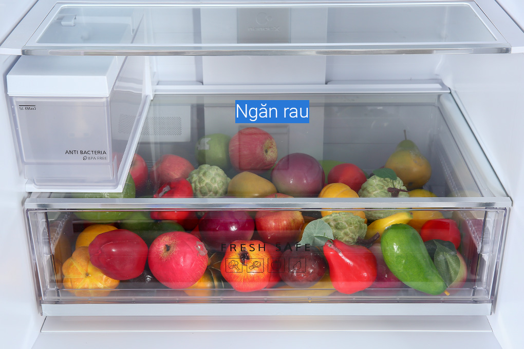 Ngăn rau được thiết kế dạng kéo khép kín, kích thước lớn có thể trữ được các loại rau củ như bắp cải, dưa hấu,... với độ ẩm và nhiệt độ tối ưu giúp chúng tươi ngon.